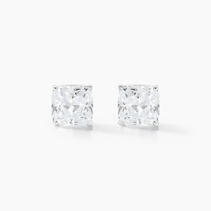 Boucles D’oreilles Or Blanc 375/1000 Oxydes De Zirconium Carre 6mm