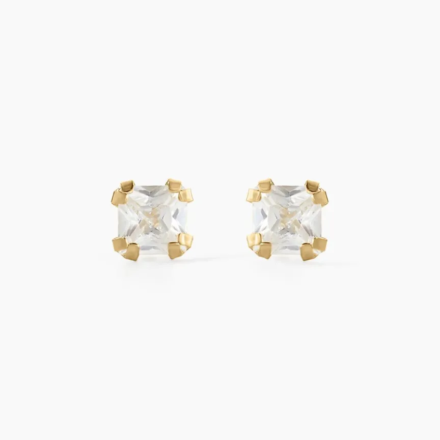 Boucles D’oreilles Or Jaune 375/1000 Puce Oxyde De Zirconium Carres 3mm