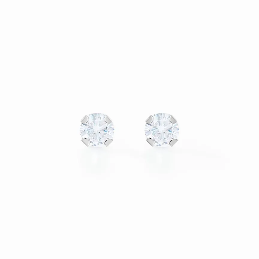 Boucles D’oreilles Or Blanc 375/1000 Puce Oxyde De Zirconium 3mm