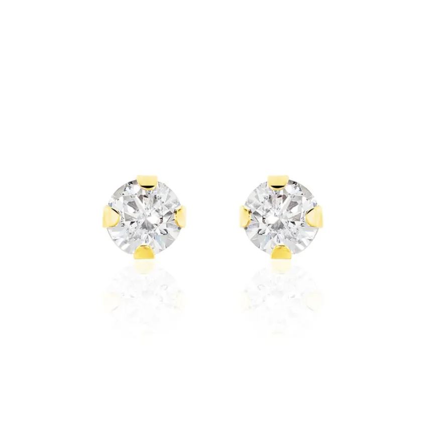 Boucles D’oreilles Or Jaune 375/1000 Puce Oxyde De Zirconium 3mm