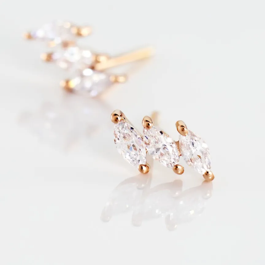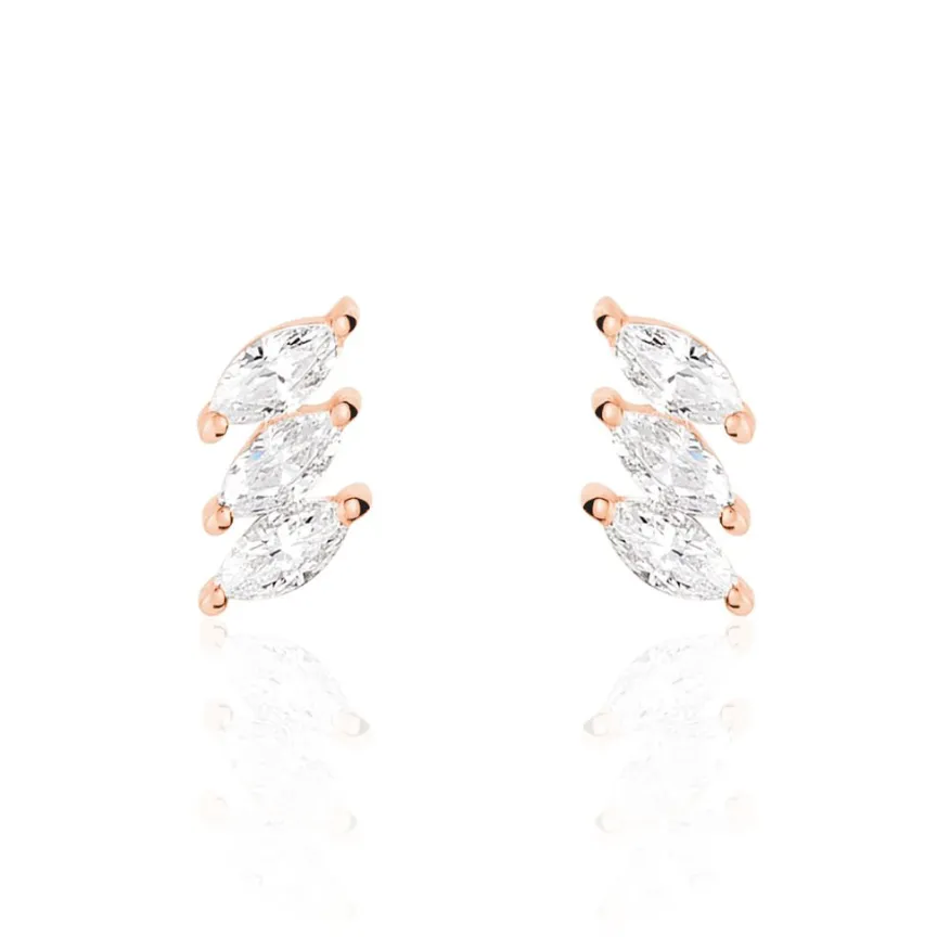 Boucles D’oreilles Or Rose 375/1000 Puces 3 Oxydes De Zirconium Forme Marquise