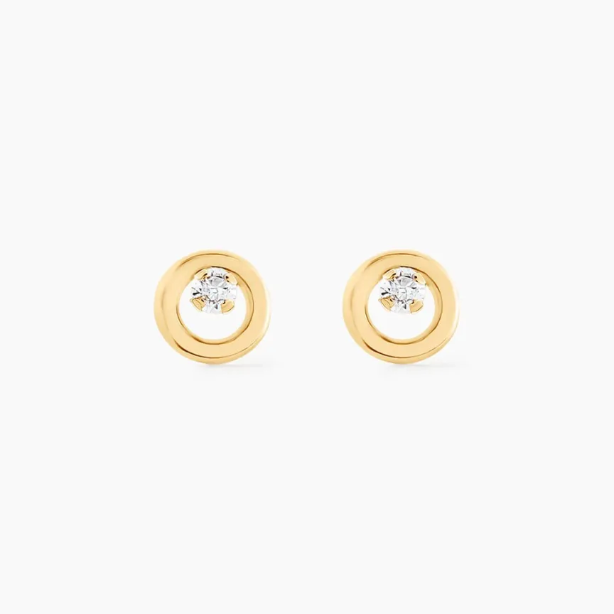 Boucles D’oreilles Or Jaune 375/1000 Puces Oxydes De Zirconium