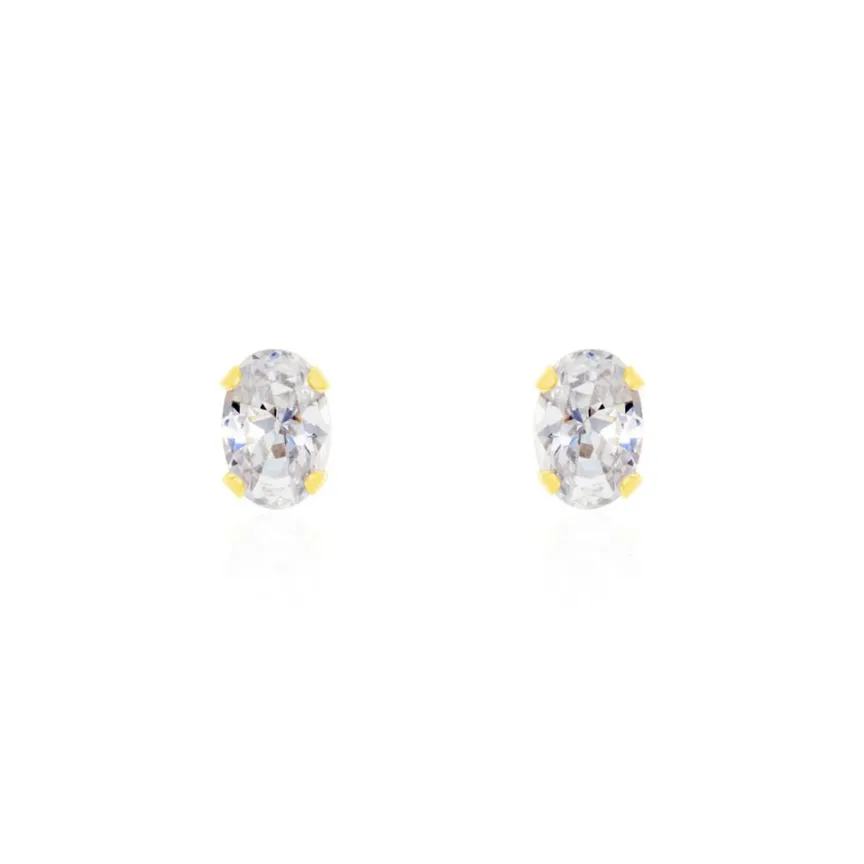 Boucles D’oreilles Puces Or Jaune 375/1000 Ovales Serti 4 Griffes Oxydes De Zirconium 6x4mm