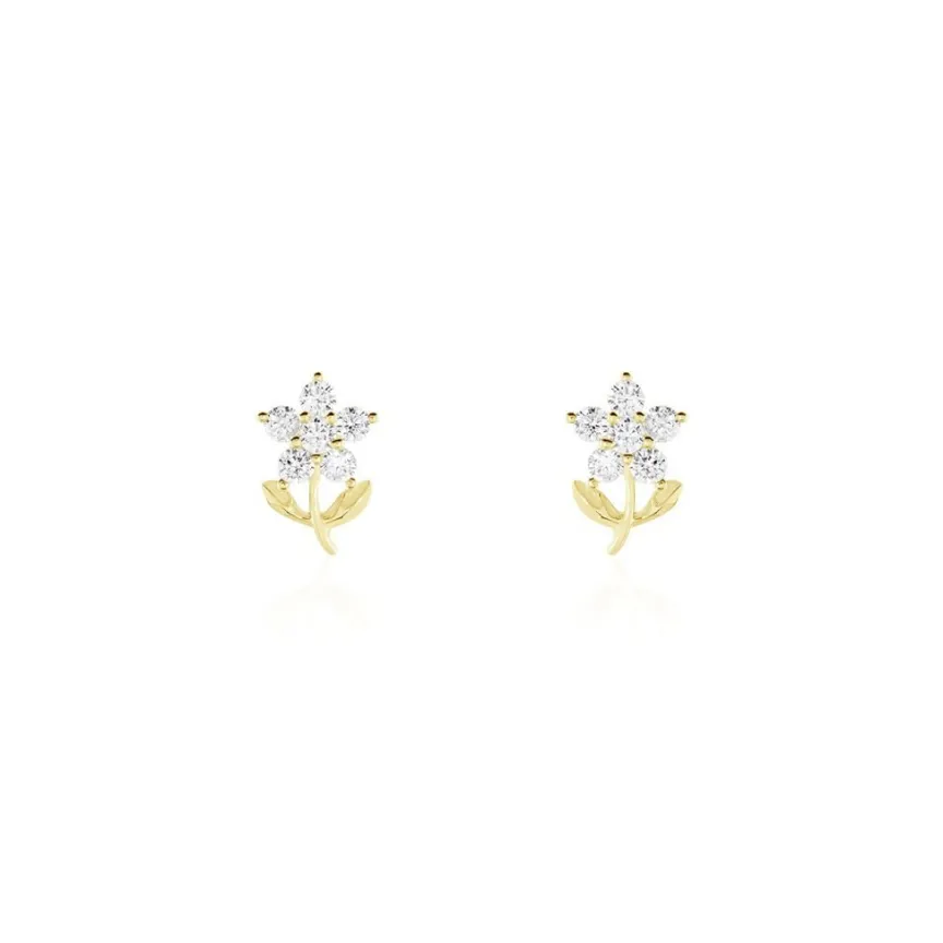 Boucles D’oreilles Or Jaune 375/1000 Formes Fleurs Oxydes De Zirconium