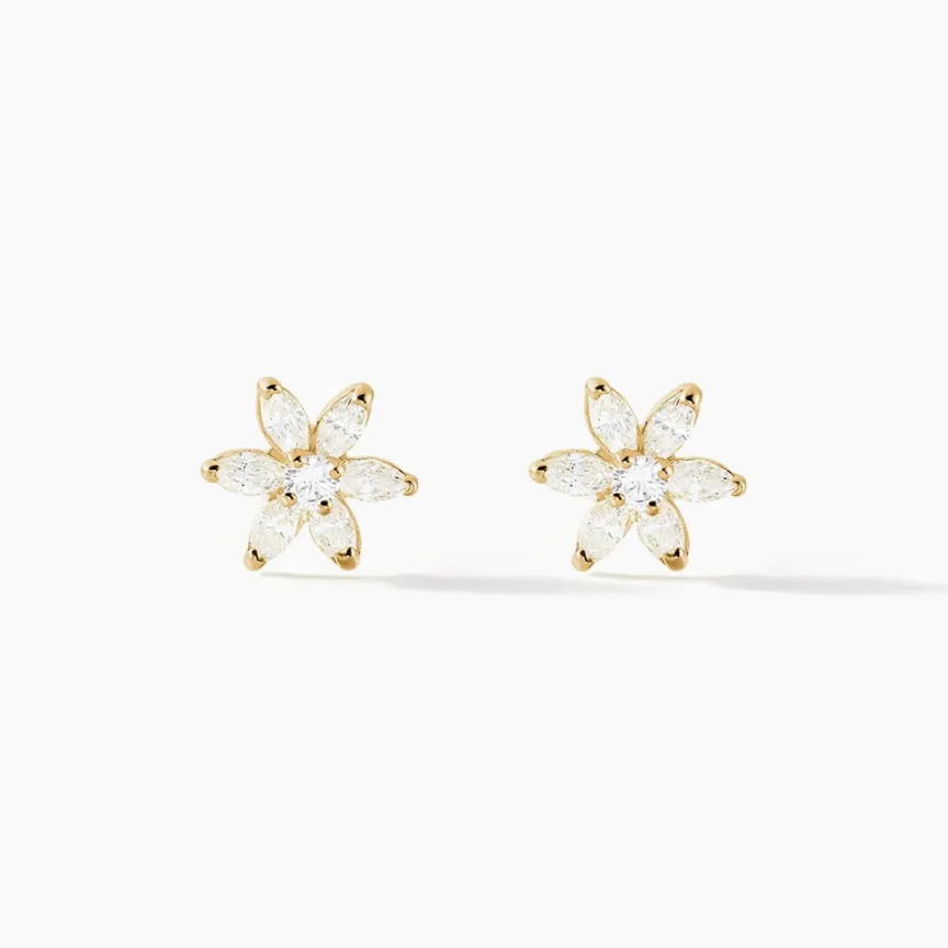 Boucles D’oreilles Or Jaune 375/1000 Fleurs Oxydes De Zirconium