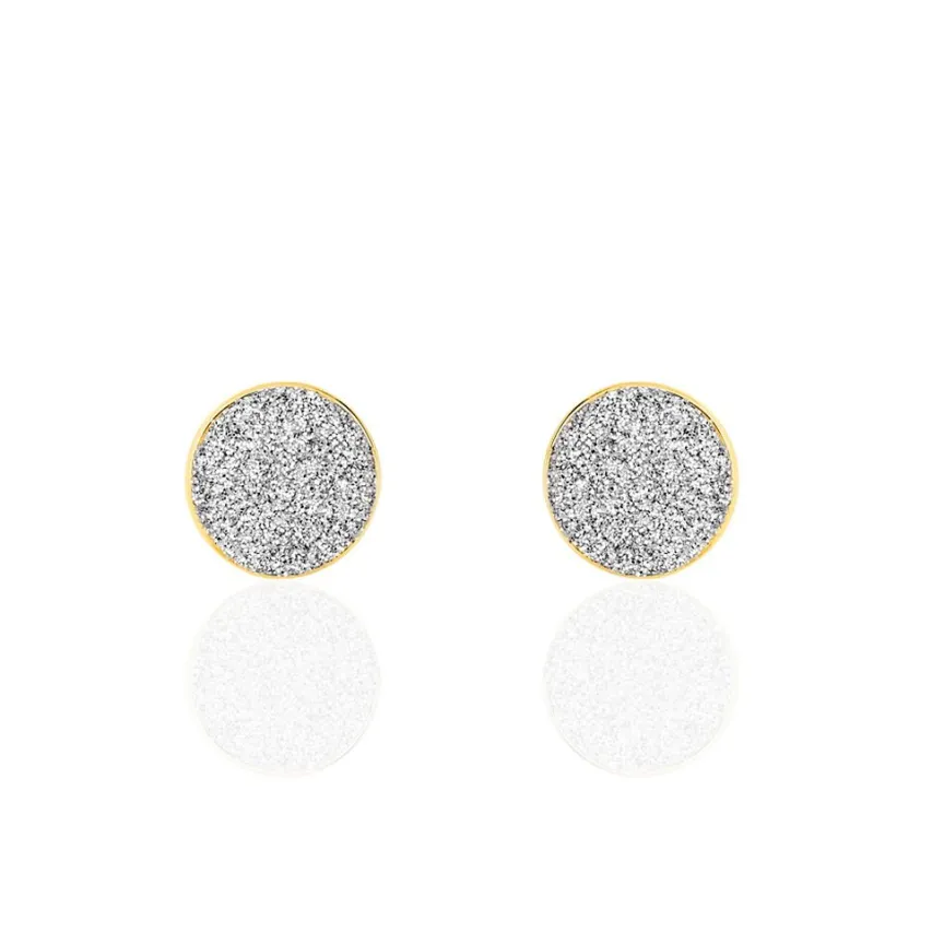 Boucles D’oreilles Puces Or Jaune 375/1000 Pastilles Glitter Argente