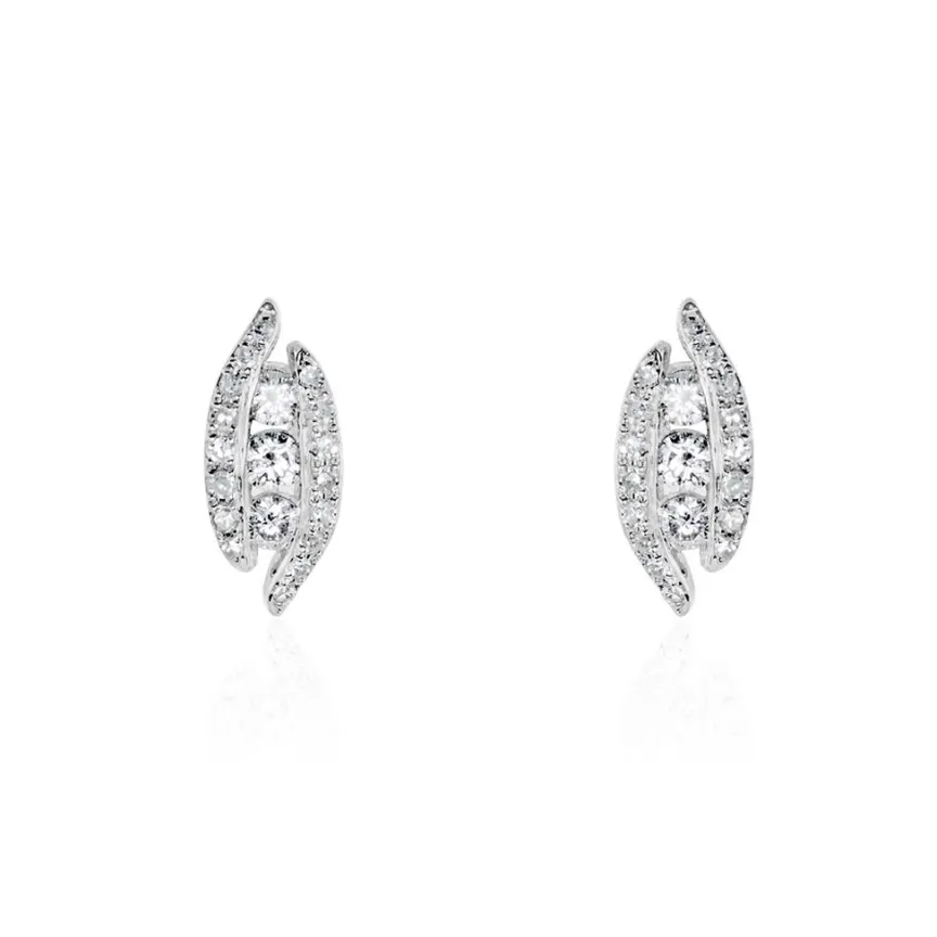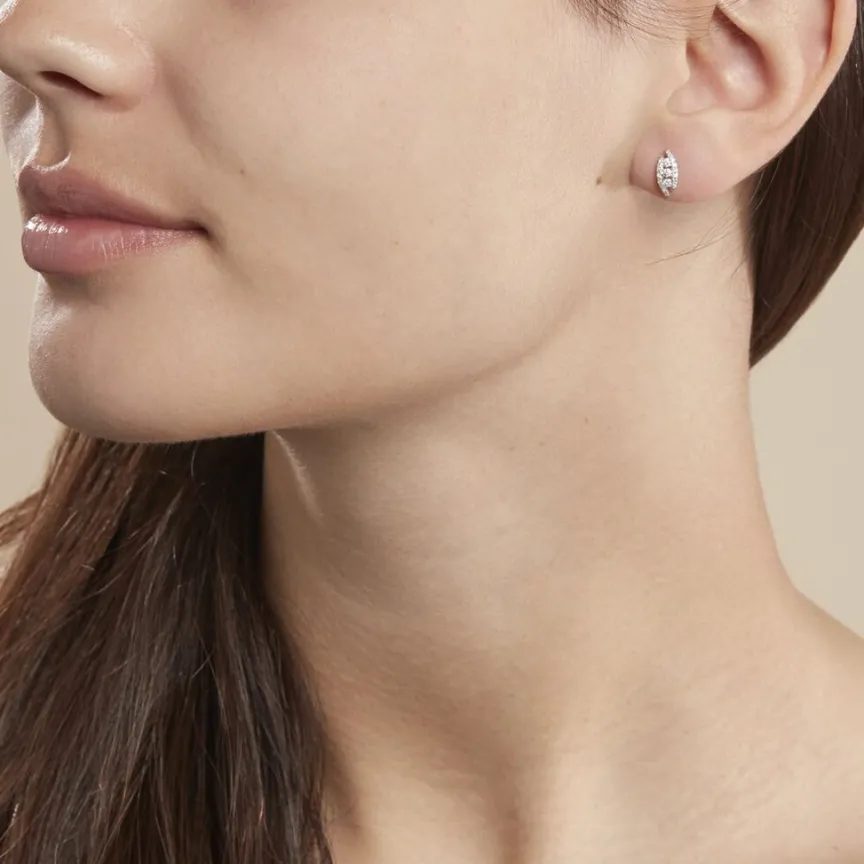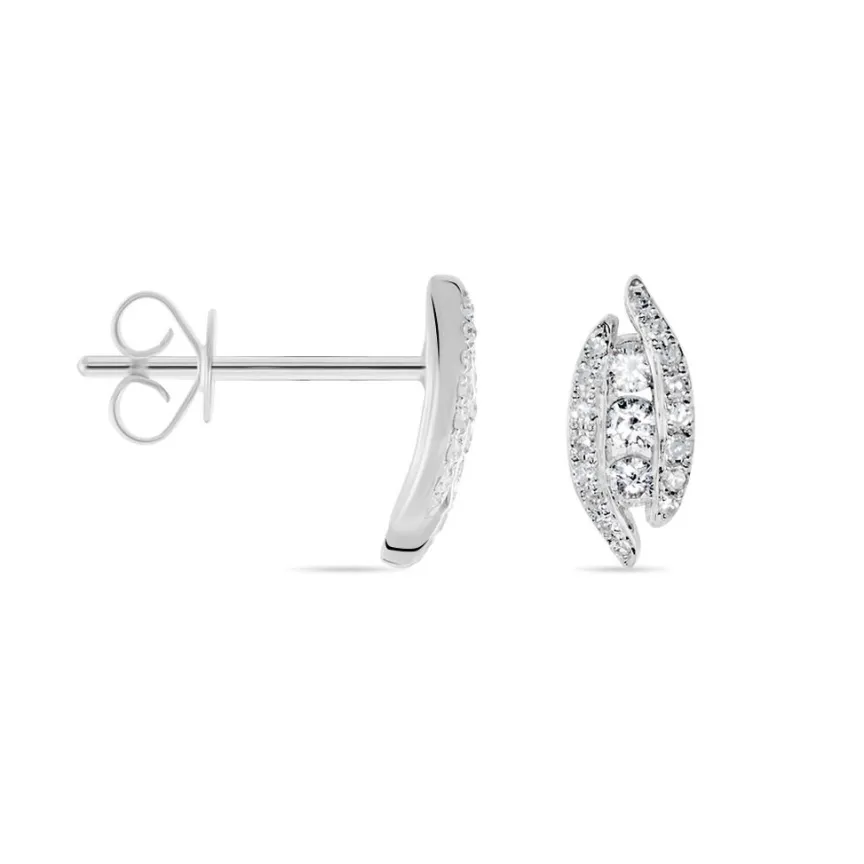 Boucles D’oreilles Or Blanc 375/1000 Eternite Trilogie Diamants 0.22cts