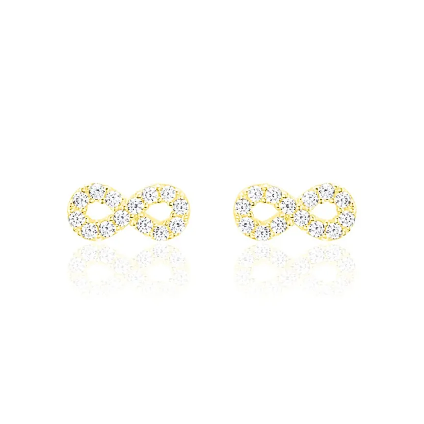 Boucles D’oreilles Puces Or Jaune 375/1000 Formes Infinis Oxydes De Zirconium