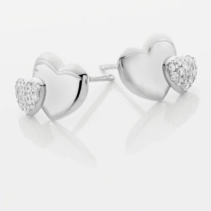 Boucles D’oreilles Puces Argent Blanc 925/1000 Double C艙ur Micro Setting Oxydes De Zirconium