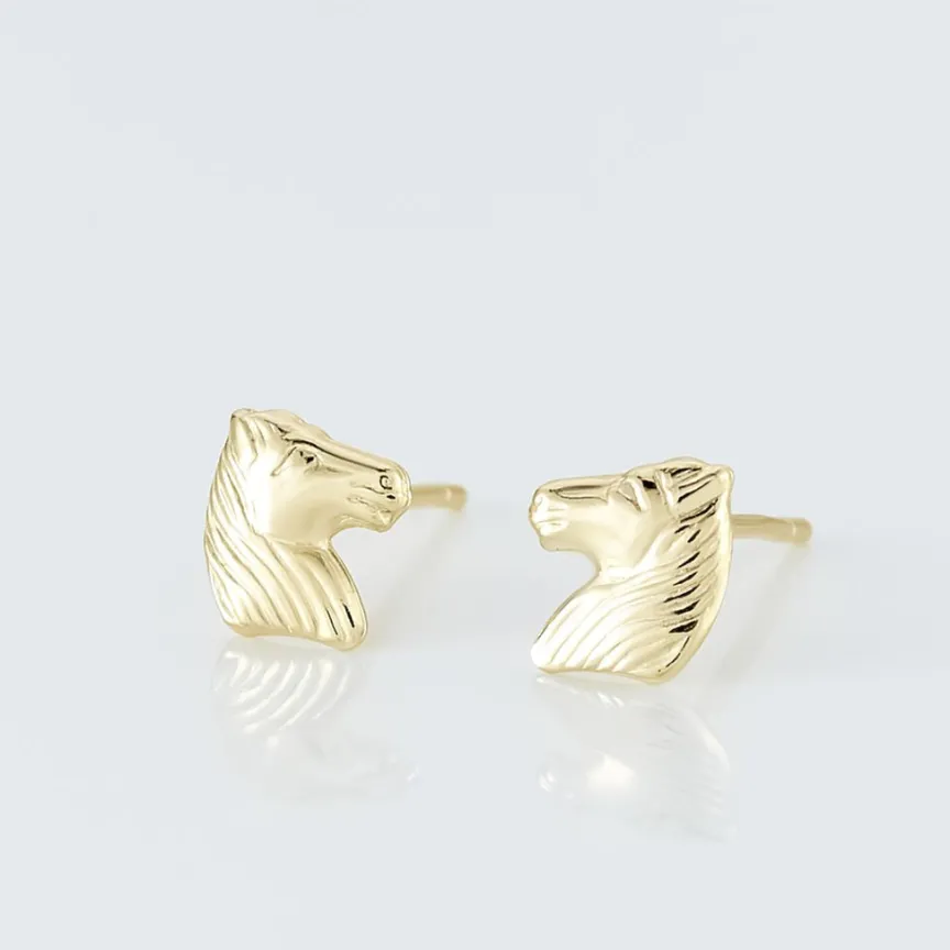 Boucles D’oreilles Or Jaune 375/1000 Tète De Cheval