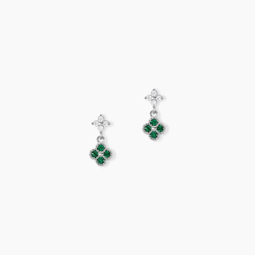 Boucles D’Oreilles Puces Argent Blanc 925/1000 Fleurs Oxydes De Zirconium Serti Griffes
