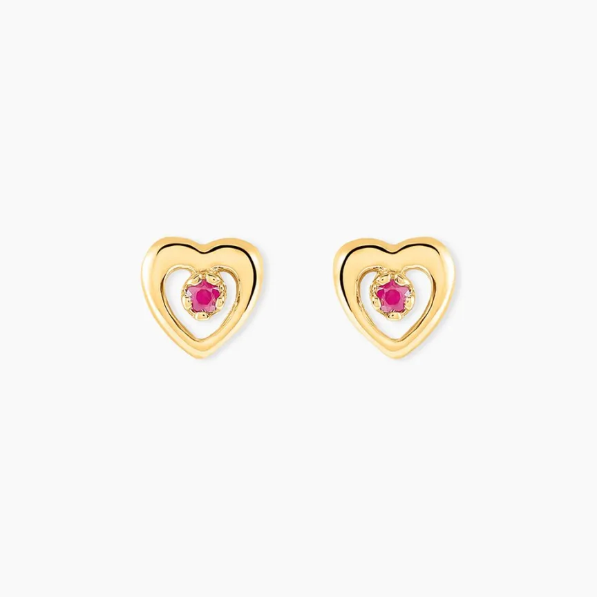 Boucles D’oreilles Or Jaune 375/1000 C艙ur Rubis