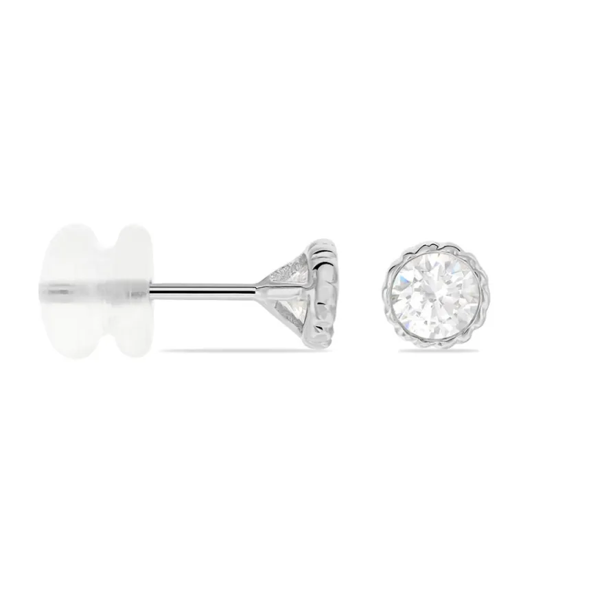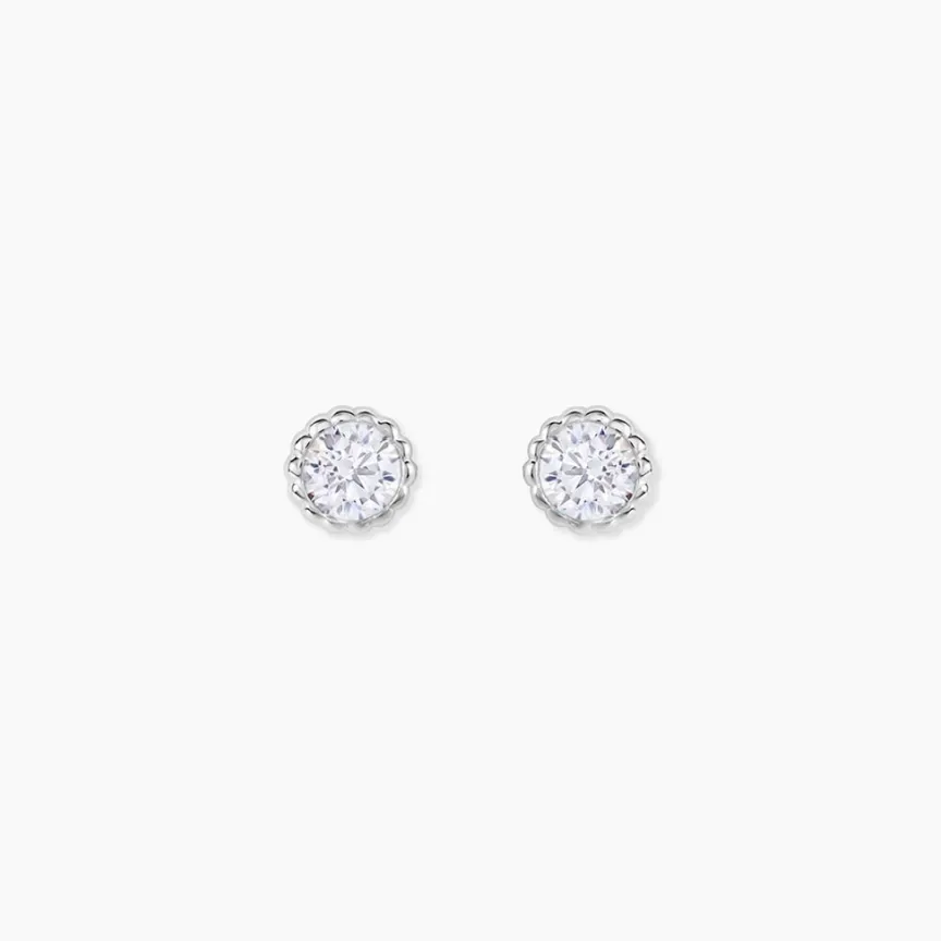Boucles D’oreilles Or Blanc 375/1000 Puces Oxydes De Zirconium Serti Clos