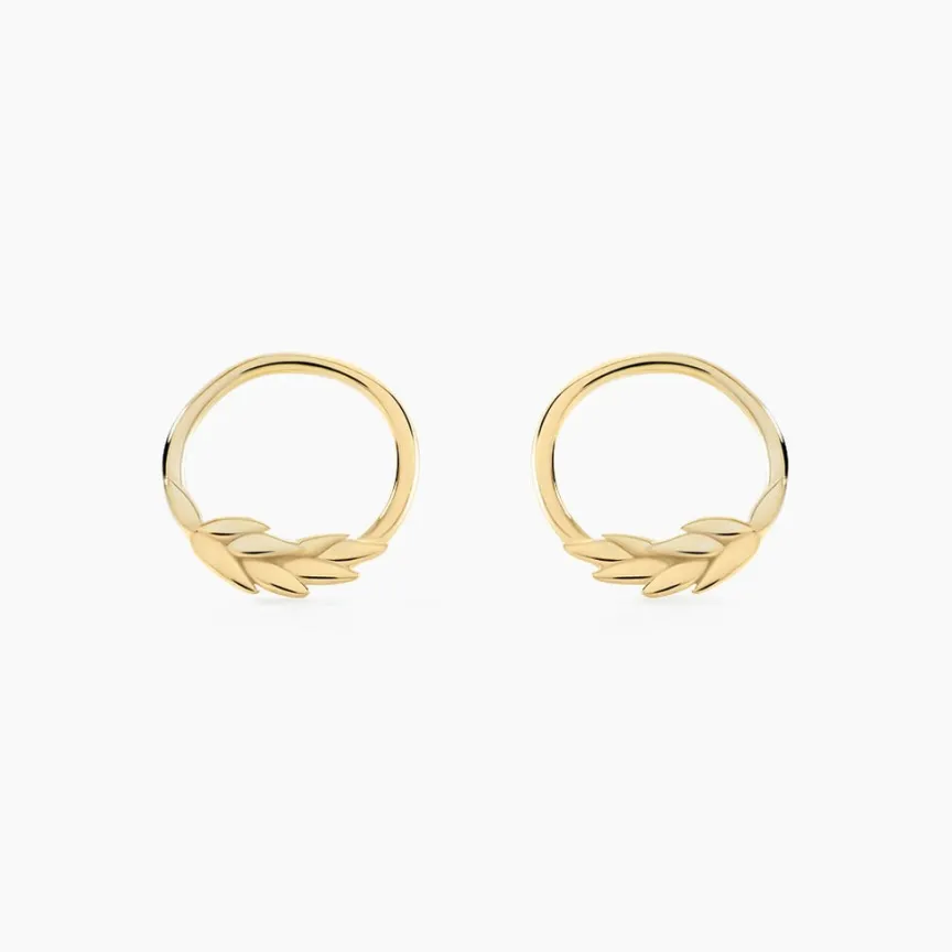 Boucles D’oreilles Puces Or Jaune 375/1000 Cercles Feuilles De Laurier
