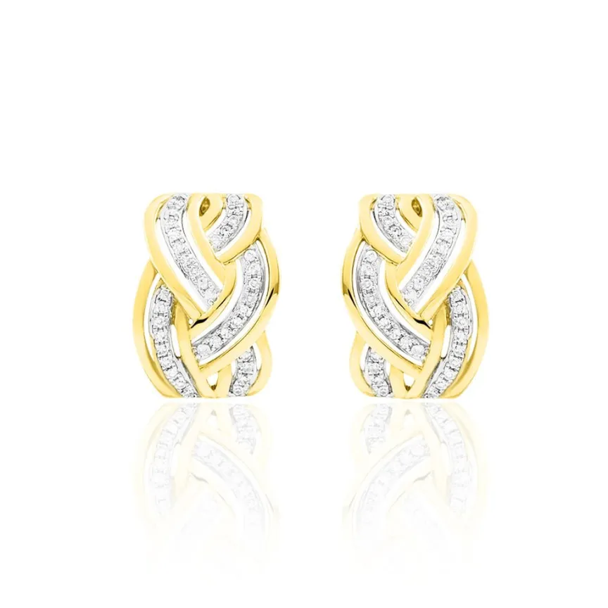 Boucles D’oreilles Or Jaune 375/1000 Diamants Entrelaces