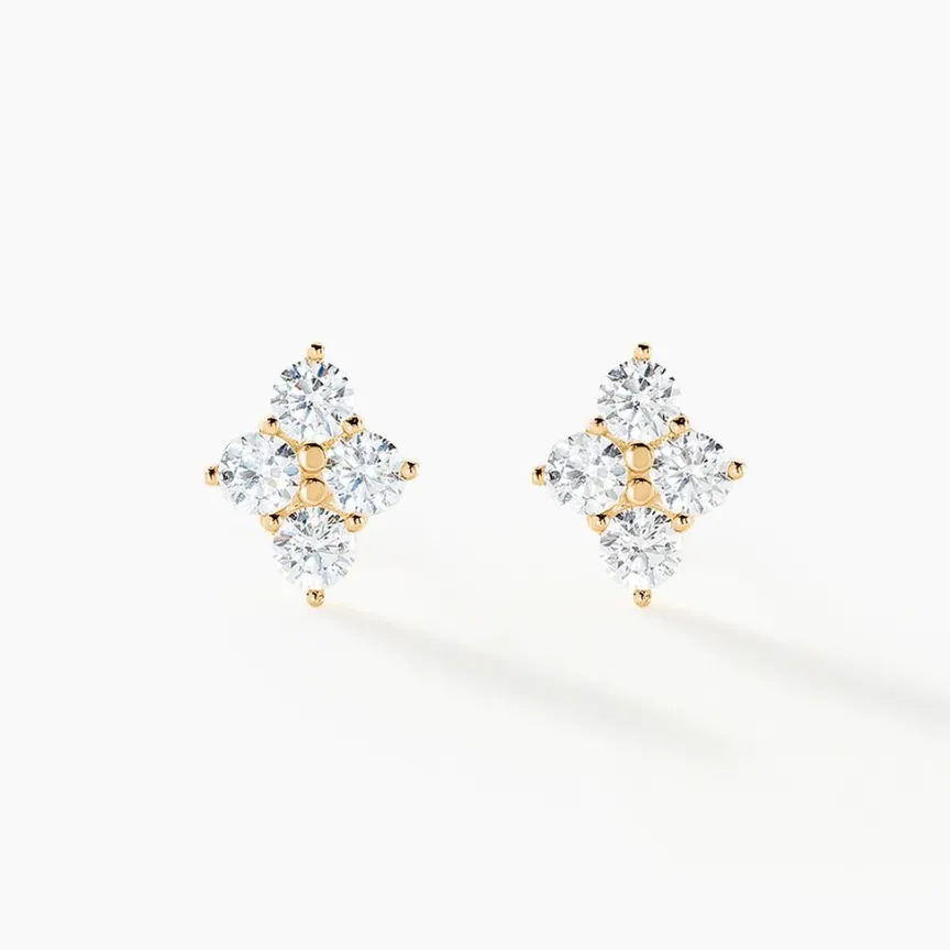 Boucles D’oreilles Puces Or Jaune 375/1000 Fleur Oxydes De Zirconium Sertis Griffes