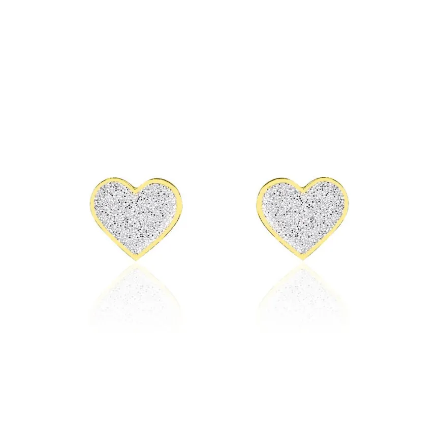 Boucles D’oreilles Puces Or Jaune 375/1000 Coeurs Glitter Argente