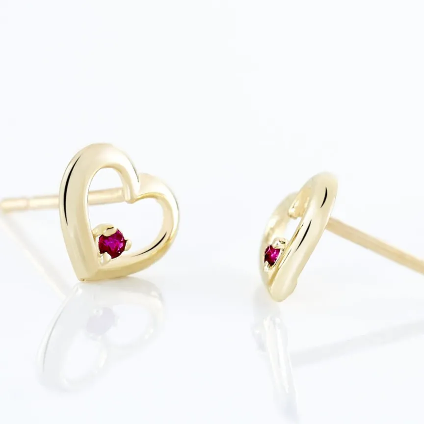 Boucles D’oreilles Or Jaune 375/1000 C艙urs Et Rubis