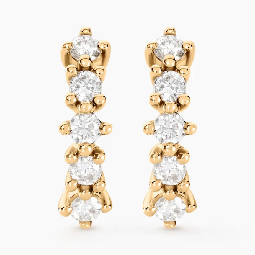 Boucles D’oreilles Puces Or Jaune 375/1000 Diamants Synthetiques Ronds 0.15cts Sertis Griffes