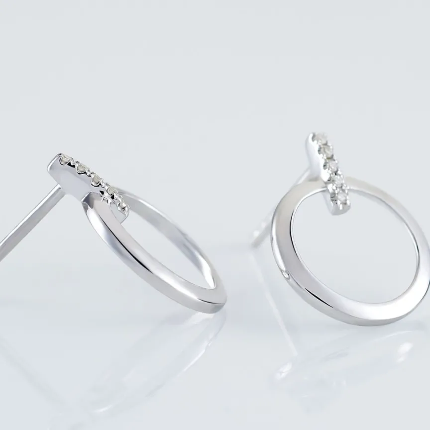 Boucles D’oreilles Or Blanc 375/1000 Forme Cercle Et Barrette Pavage Diamants