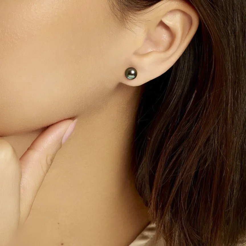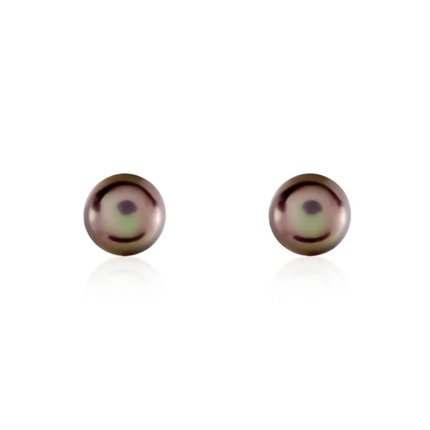 Boucles D’oreilles Or Jaune 375/1000 Perles De Culture Bouton Teintées Noires 7/7.5mm