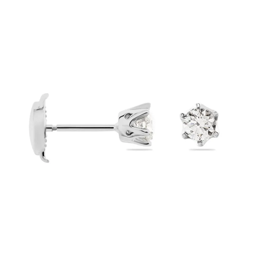 Boucles D’oreilles Platine 950/1000 Puces Diamants 0.40cts Sertis 6 Griffes Systemes Alpas