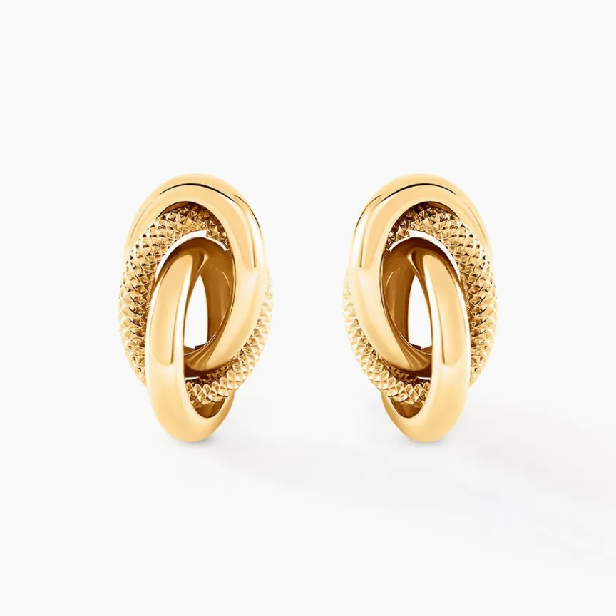 Boucles D’oreilles Puces Or Jaune 750/1000 Nid Effet Diamante Longueur 17.6mm Largeur 10.5mm