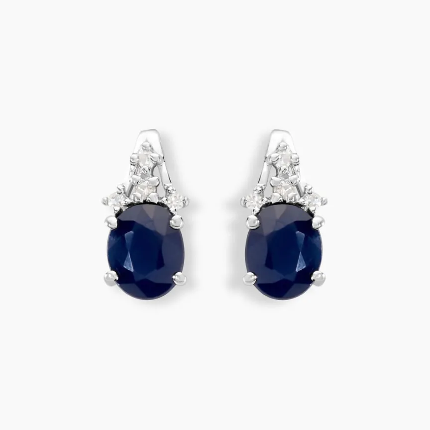 Boucles D’oreilles Puces Or Blanc 375/1000 Saphirs Ovales 0.7ct Et Diamants