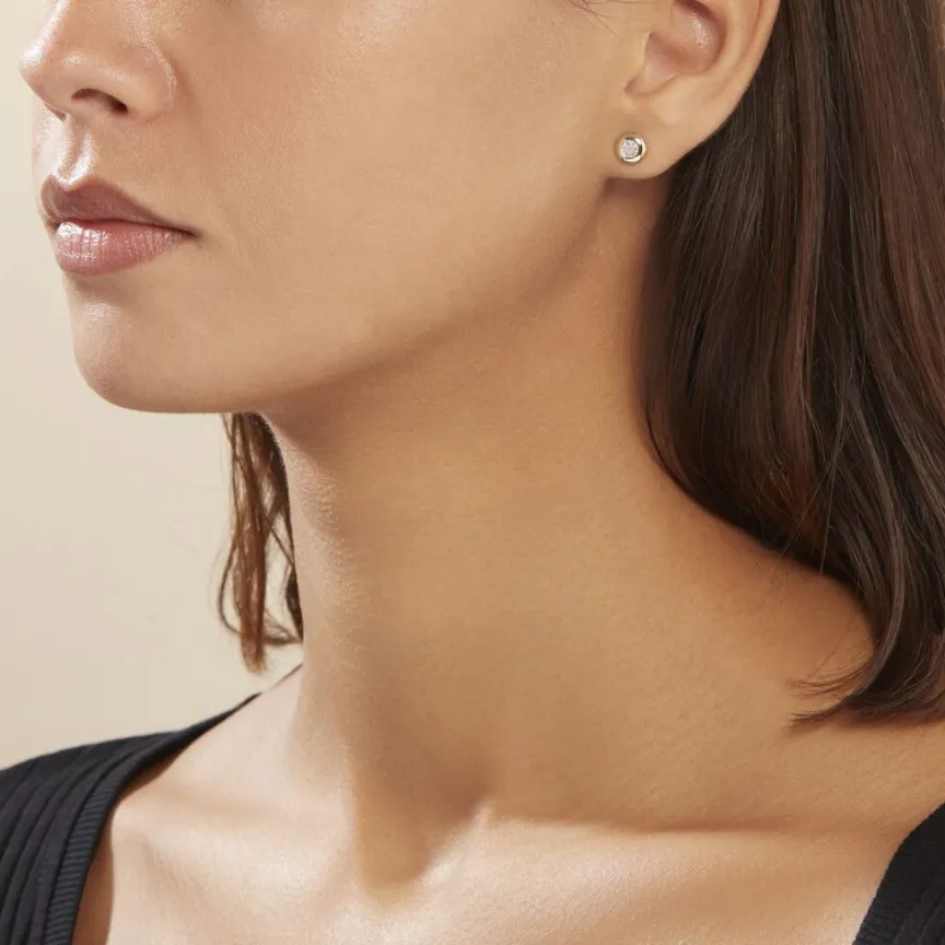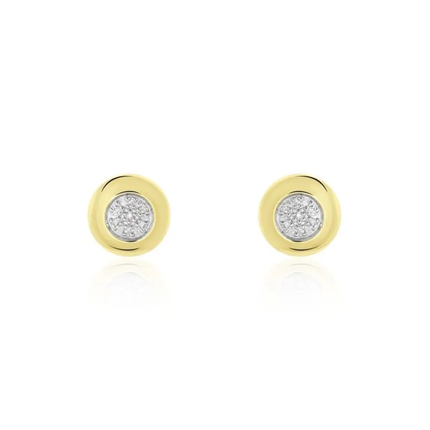 Boucles D’oreilles Puces Or Jaune 375/1000 Pastilles Pavages Diamants