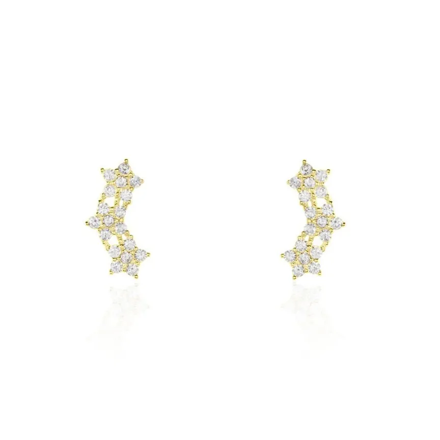 Boucles D’oreilles Puces Or Jaune 375/1000 Barrettes Etoiles Oxydes De Zirconium