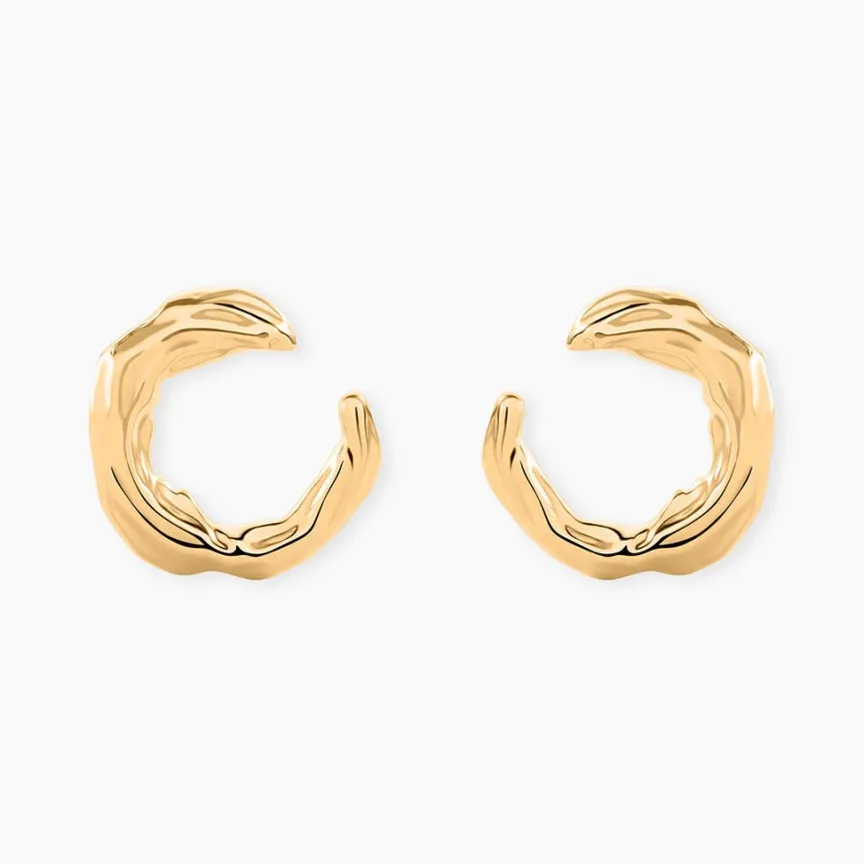 Boucles D’Oreilles Puces Plaqué Or Jaune Cercles Ouverts Effet Organique