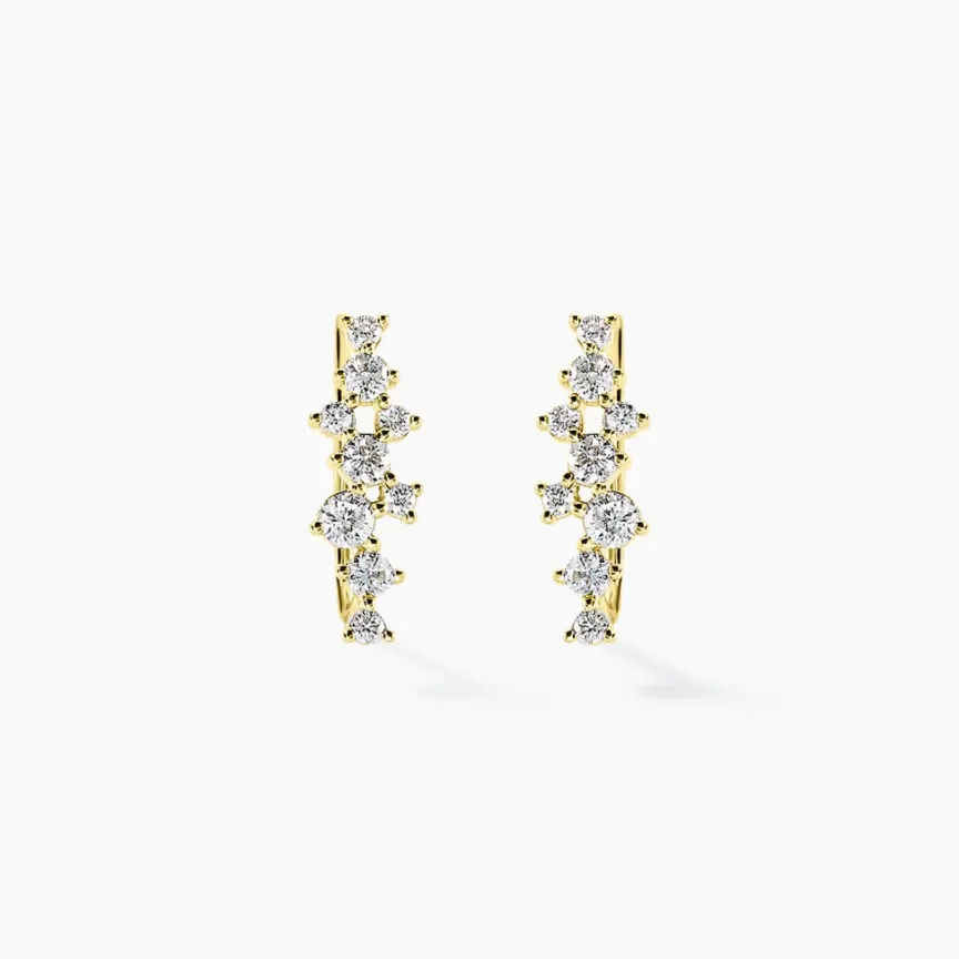 Boucles D’oreilles Grimpantes Or Jaune 375/1000 Diamants Synthetiques 0.131cts Sertis Griffes