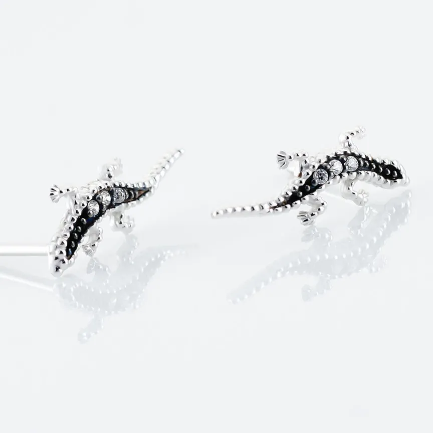Boucles D’oreilles Argent Blanc 925/1000 Lezards Ruthenium Oxydes De Zirconium
