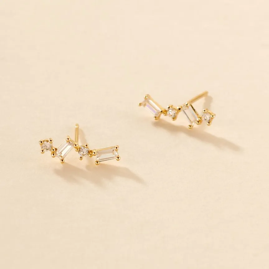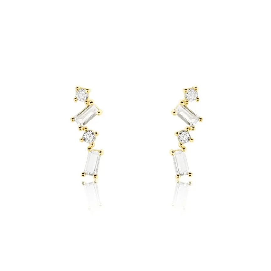 Boucles D’oreilles Grimpantes Or Jaune 375/1000 Oxydes De Zirconium Rectangle Et Rond Serti Griffes