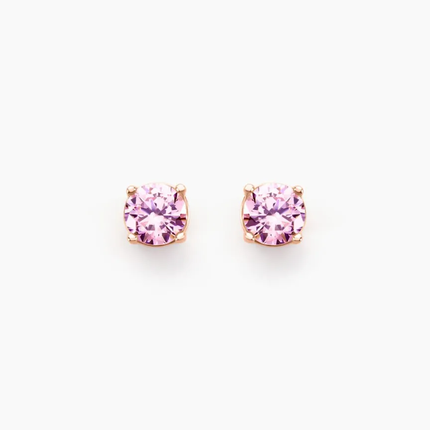 Boucles D’oreilles Puces Argent Rose 925/1000 Oxyde De Zirconium Rose Serti Griffes