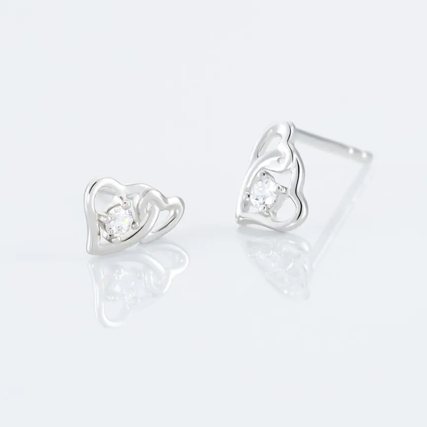 Boucles D’oreilles Argent Blanc 925/1000 Double Coeur Oxydes De Zirconium