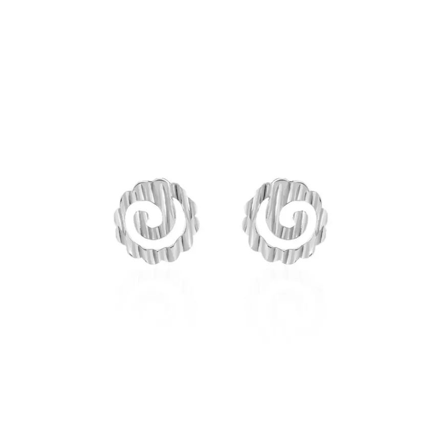 Boucles D’oreilles Puces Argent Blanc 925/1000 Tourbillons Effet Diamante