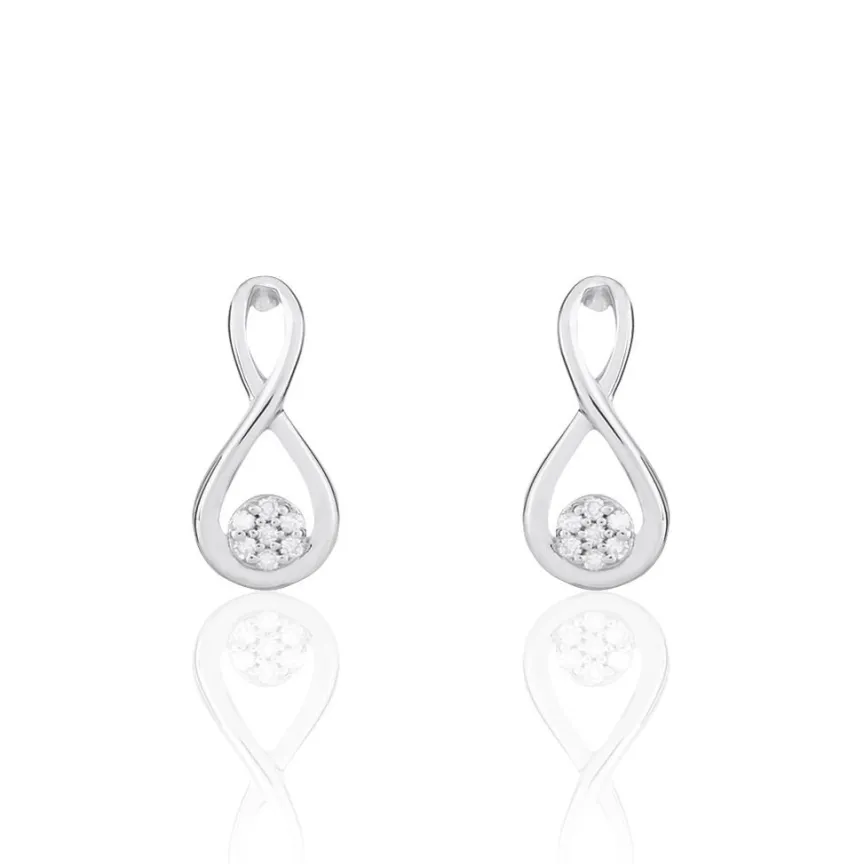 Boucles D’oreilles Or Blanc 375/1000 Forme Goutte Huit Diamants 42cm