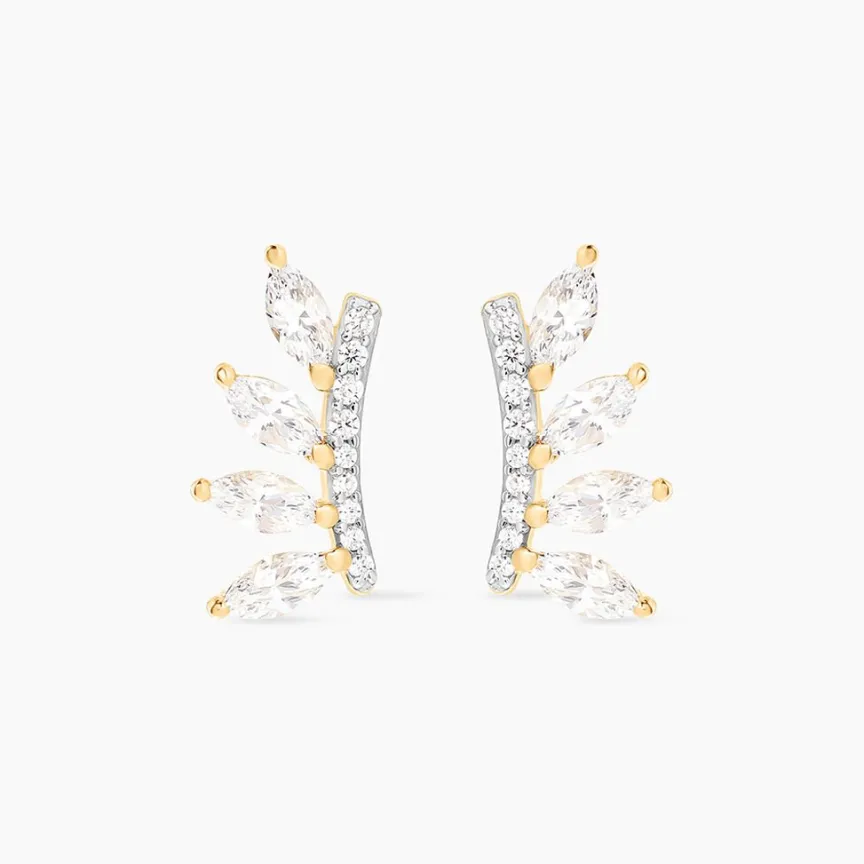 Boucles D’oreilles Puces Or Jaune 375/1000 Oxydes De Zirconium Navettes 1 Cts Serti Griffes