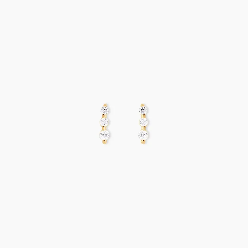 Boucles D’oreilles Puces Or Jaune 375/1000 Barette 3 Oxydes De Zirconium Sertis 2 Griffes