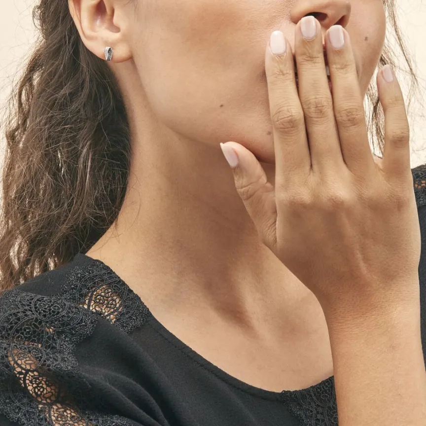 Boucles D’oreilles Or Blanc 375/1000 Diamant Blanc Et Diamant Noir Noeud Plat