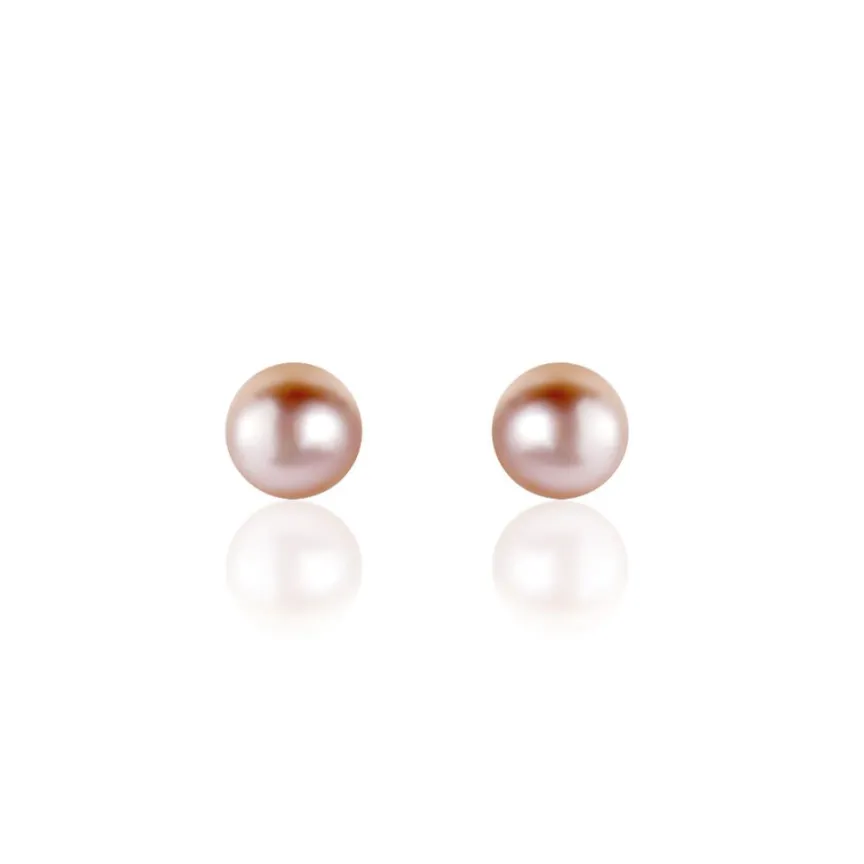 Boucles D’oreilles Or Jaune 375/1000 Perles De Culture Bouton Teintées Roses 5/5.5 Mm