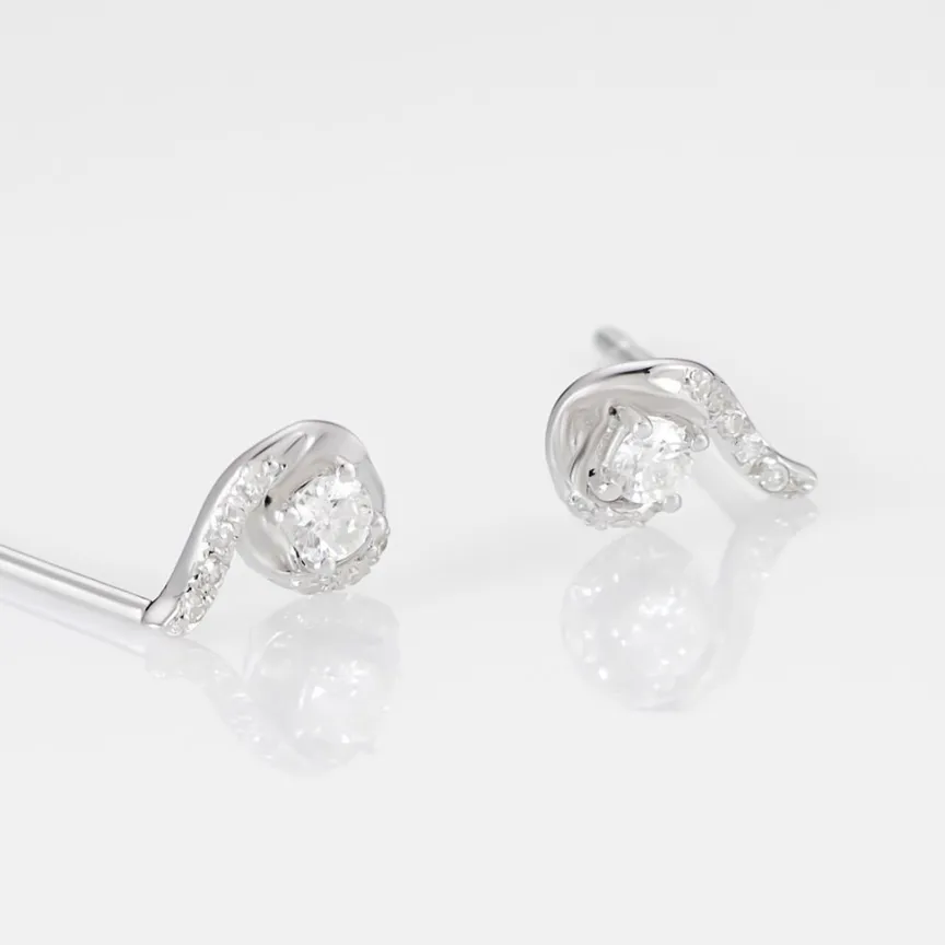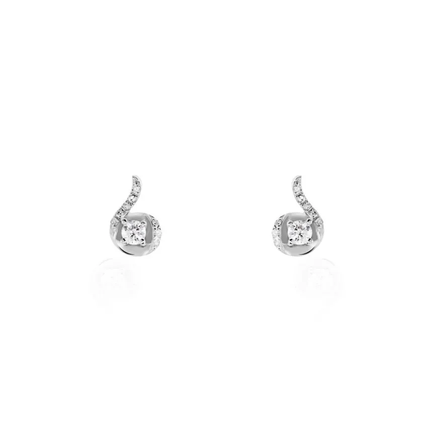 Boucles D’oreilles Or Blanc 375/1000 Effet Vrille Solo Accompagne Diamants 0.14cts Pm