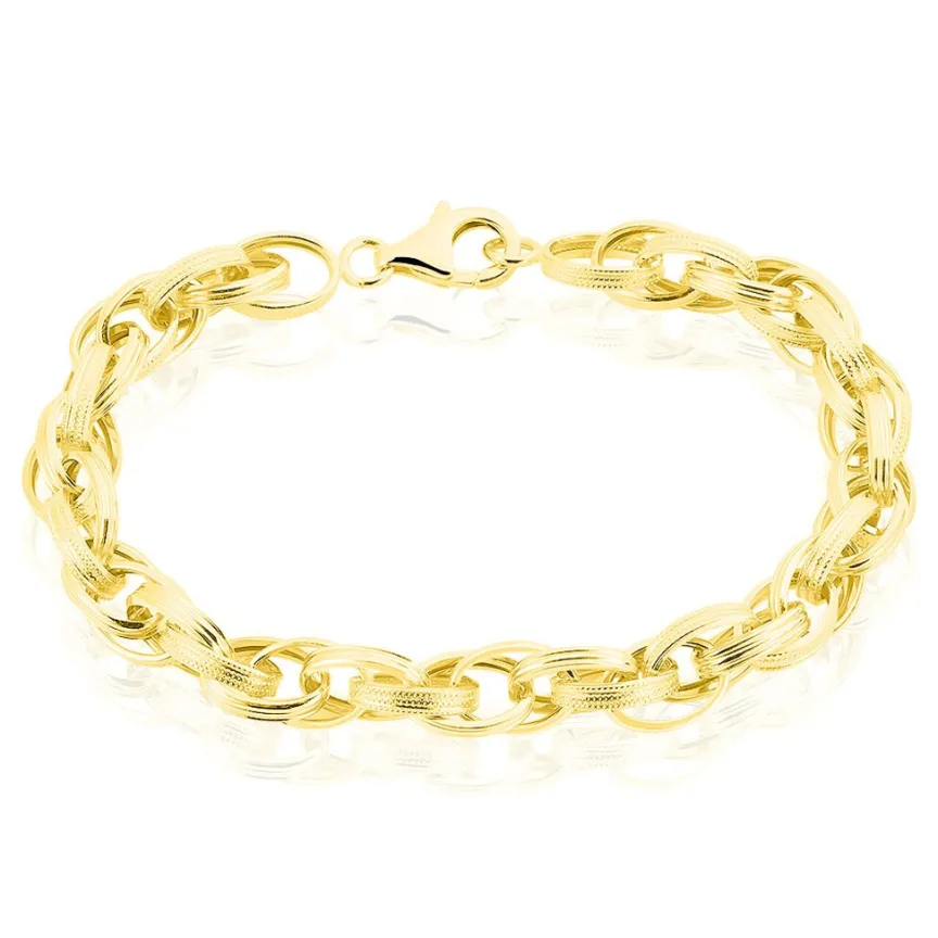 Bracelet Or Jaune 375/1000 Maillons Ovales Fil Plat Lisses Et Diamantes 8.3mm 19cm