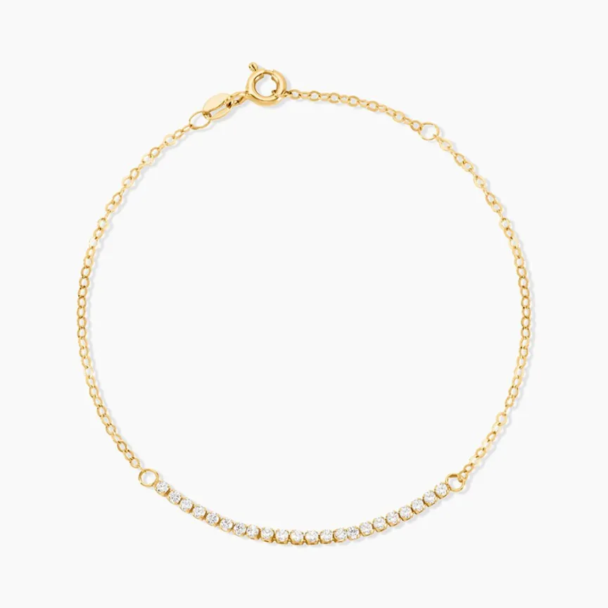 Bracelet Or Jaune 375/1000 Barrette Oxydes De Zirconium Maille Forcat 16+2Cm