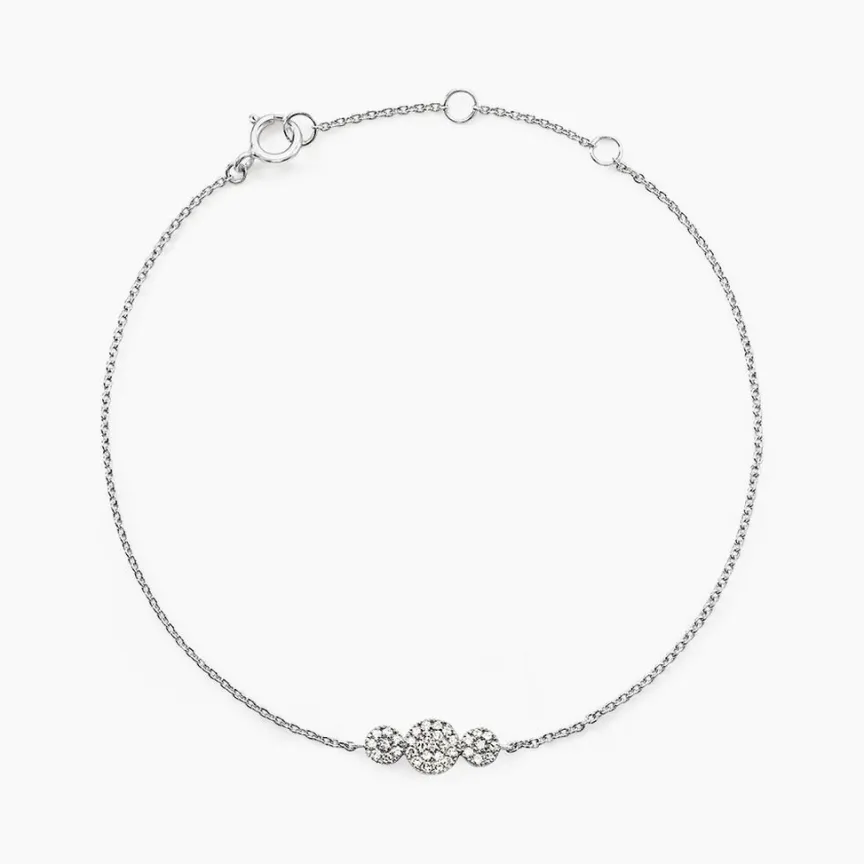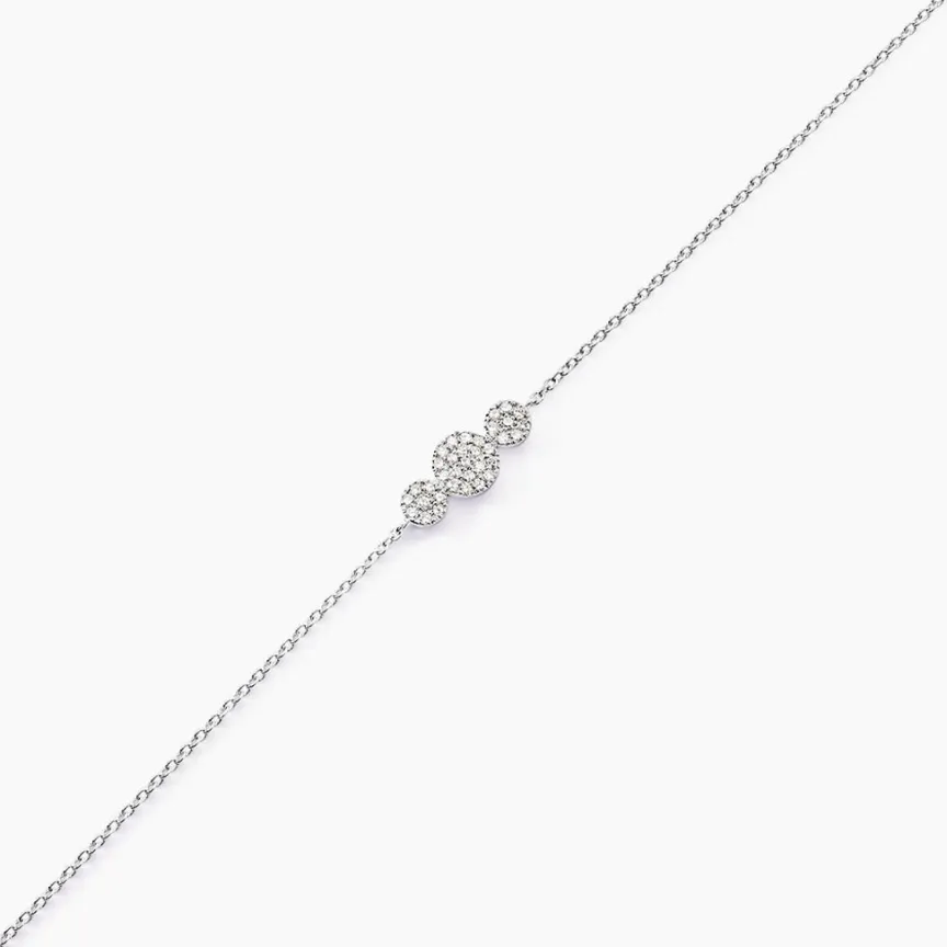 Bracelet Or Blanc 375/1000 Pastilles Pge Diamants 18.5cm