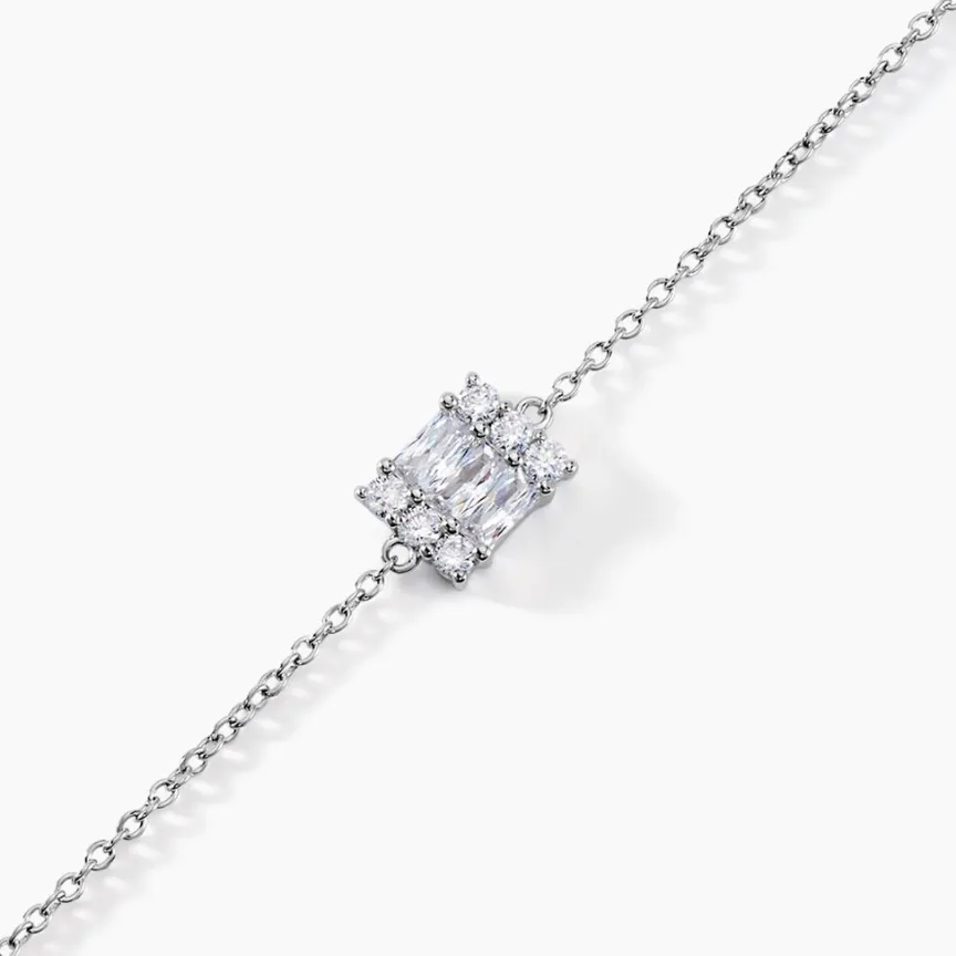 Bracelet Argent Blanc 925/1000 Oxydes De Zirconium Taille Baguette Maille Forcat 16+3cm
