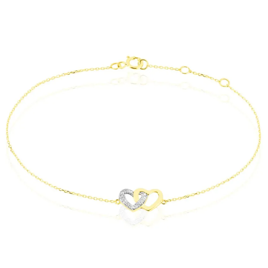 Bracelet Or Jaune 375/1000 C艙ur Double Pavage Diamants 18cm