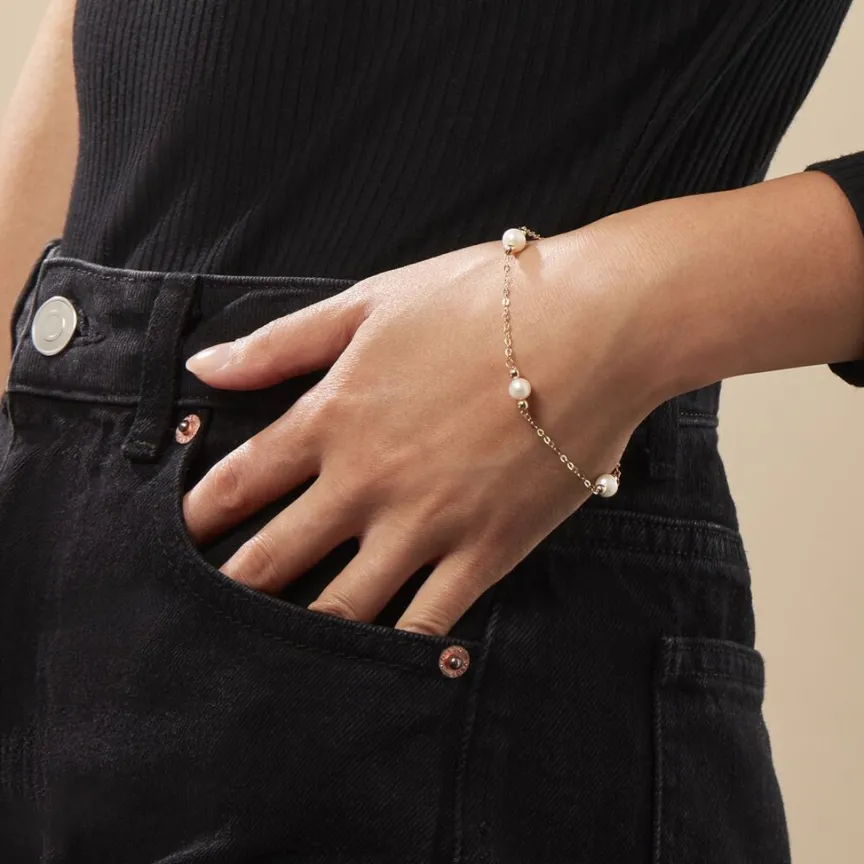 Bracelet Or Jaune 375/1000 Perles De Culture 6.5mm 19cm