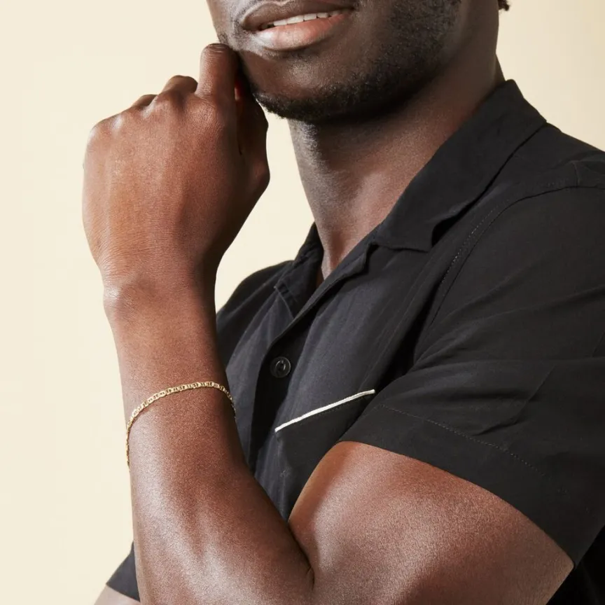 Bracelet Or Jaune 375/1000 Maille Marine Plate Largeur 3.5mm 20cm
